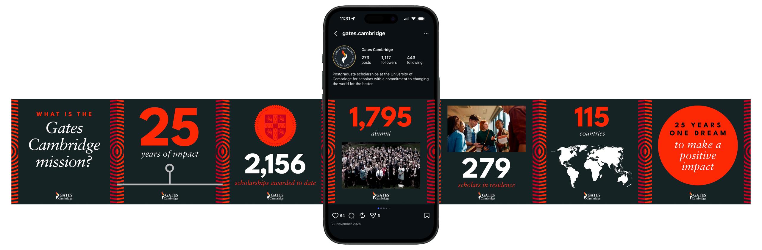 The strategic work and collaborative workshop saw us to The Ripple Effect. The campaign amplified that every Gates Cambridge scholar is a recipient of opportunity, and that each used it to generate meaningful change, and influence communities around the world.